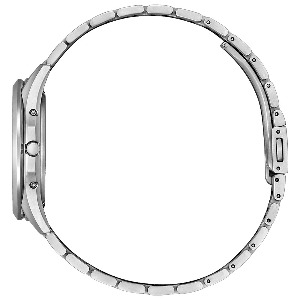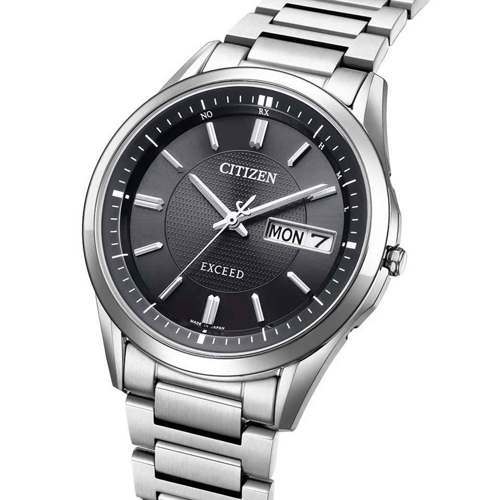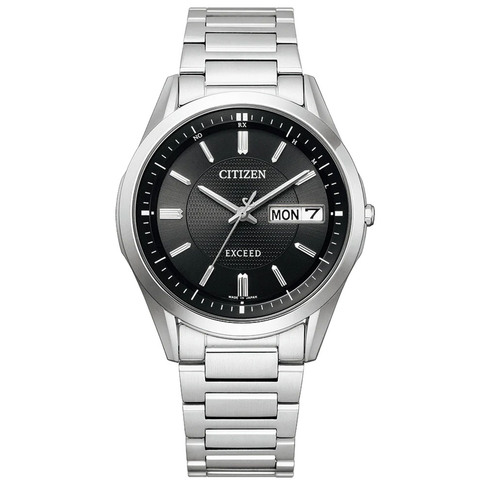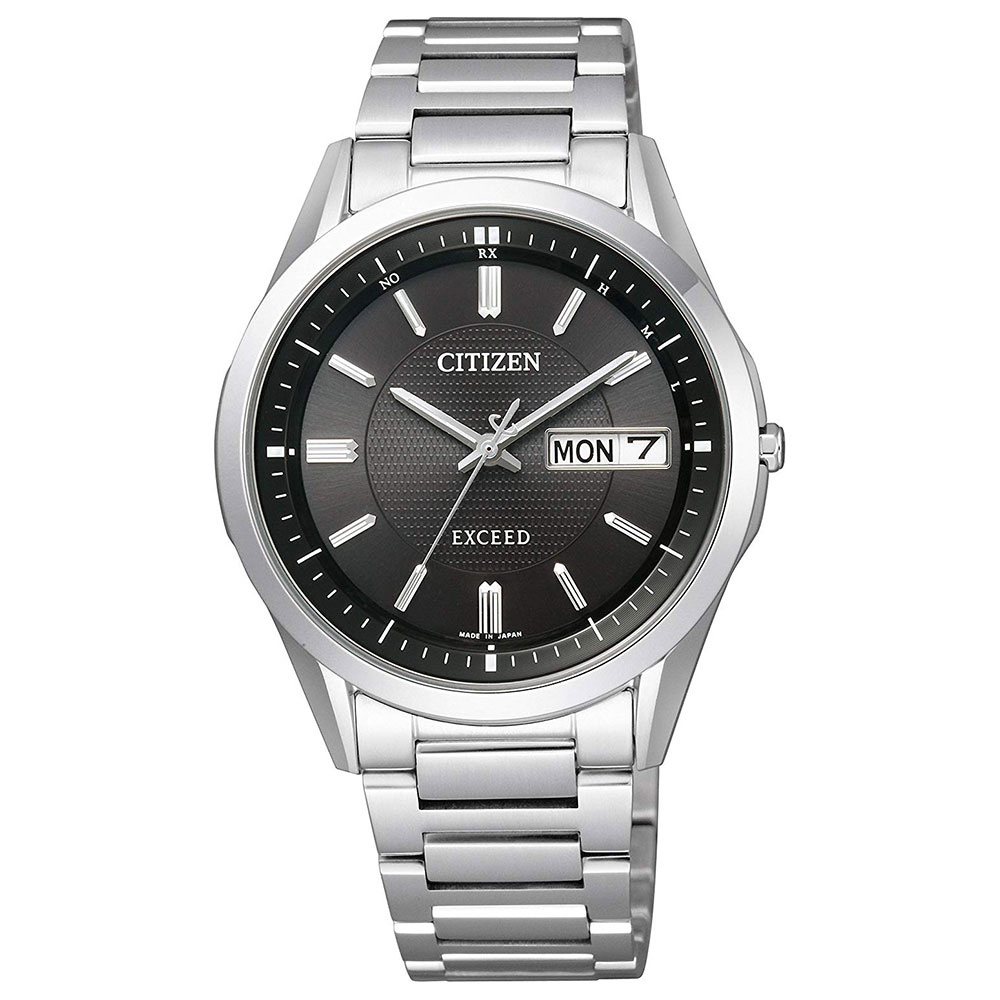 CITIZEN EXCEED AT6030-51E – men’s watch manufactured by Citizen. It is equipped with Japanese solar quartz movement and H100 caliber. Titanium, hard coating case of round shape. Case dimensions are 38 mm. in diameter and 8.5 mm. in thickness. The dial of this Citizen watch is black. Display type: analog. This timepiece has sapphire, super clear coating glass. Titanium, hard coating band, band color: silver. 50 m. water resistance. The watch is from Exceed collection. The following features are equipped: radio controlled, perpetual calendar, date, day, antimagnetic.