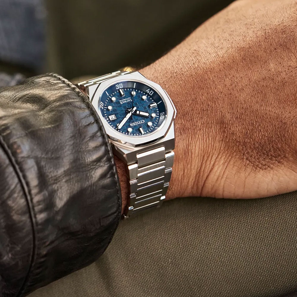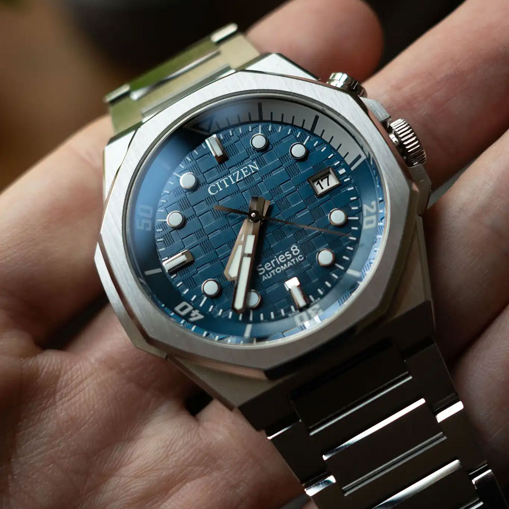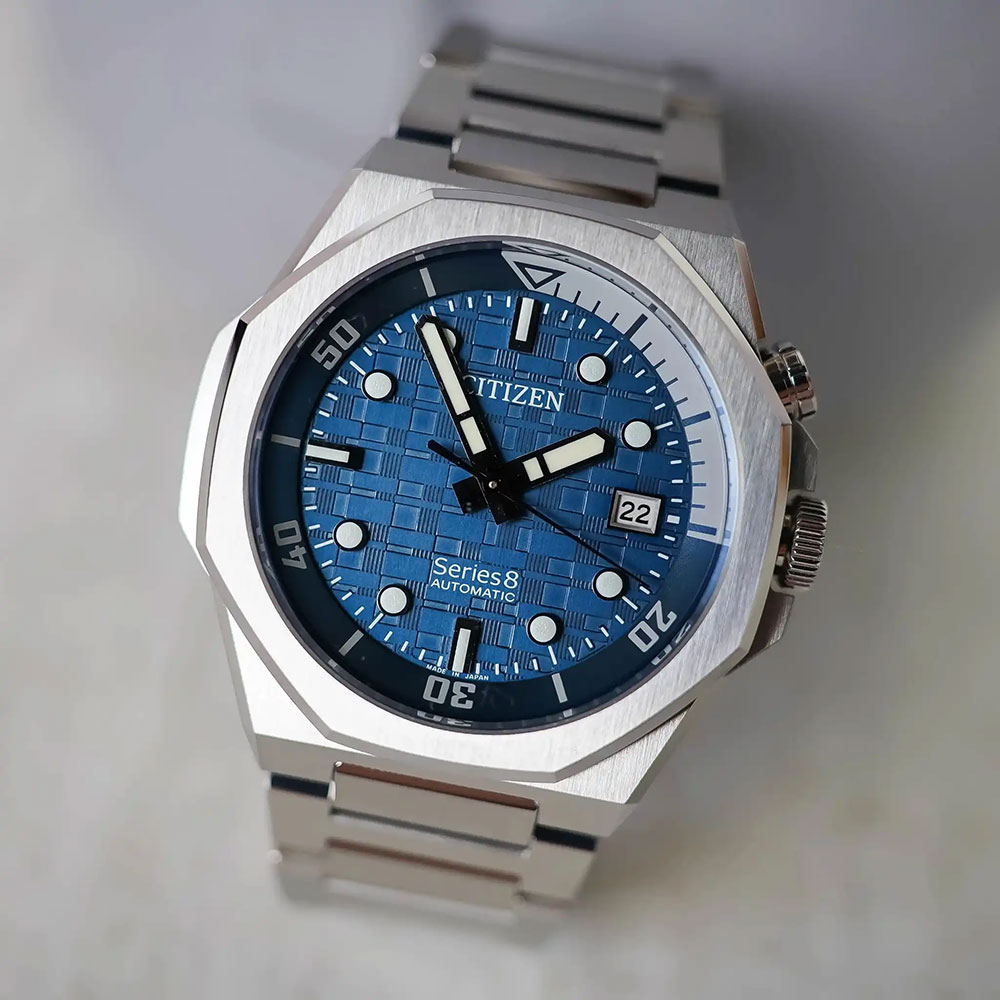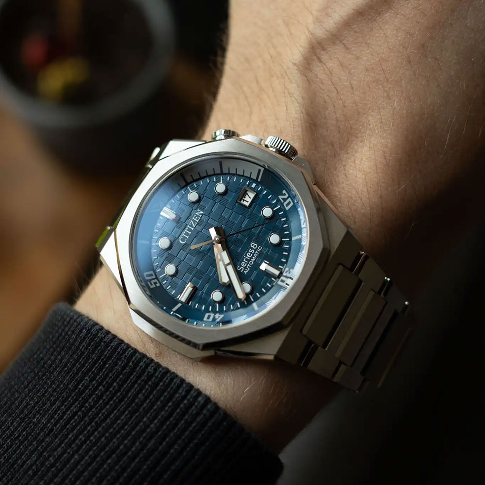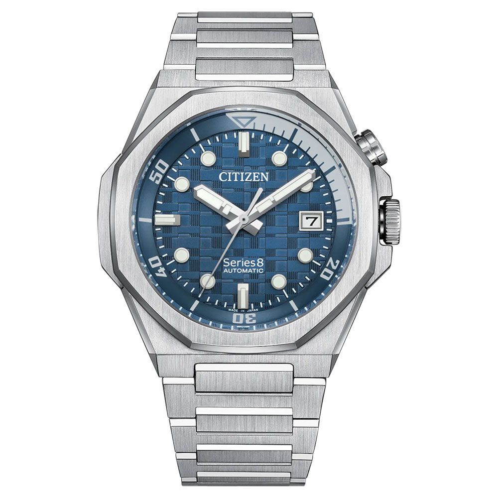 Citizen Mechanical Series 8 890 Automatic Blue Dial Silver Stainless Steel Bracelet Date Display Watch