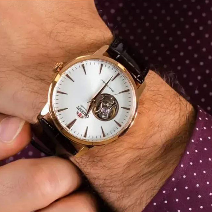 ORIENT Mechanical Classic Contemporary Open Heart White Dial Black Leather Strap Automatic Watch
