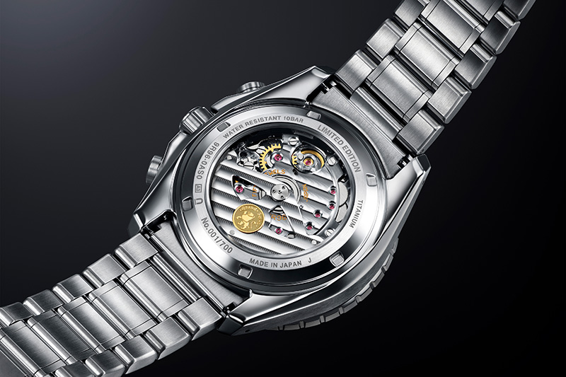 Caliber 9R96 has a power reserve of 72 hours, which is maintained even if the chronograph is in use. The Grand Seiko lion in 18K gold graces the oscillating weight to symbolize the enhanced accuracy of ±10 seconds per month.