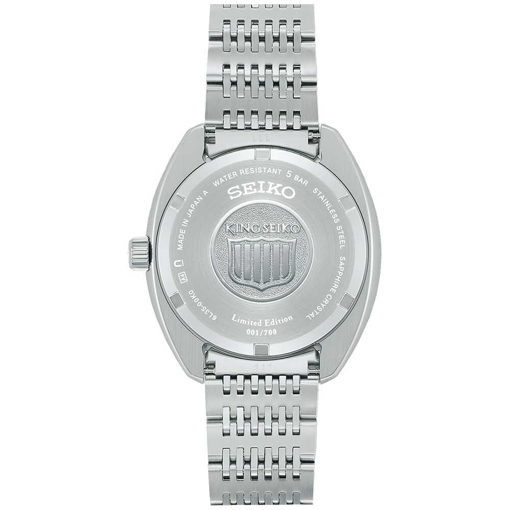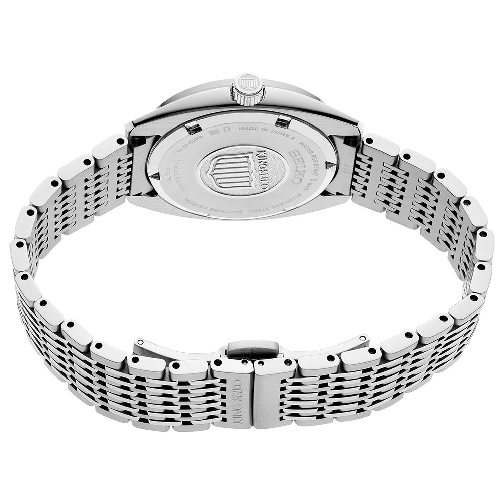 Crown | Silver tone screw down with King Seiko emblem at 3 o’clock position | |||