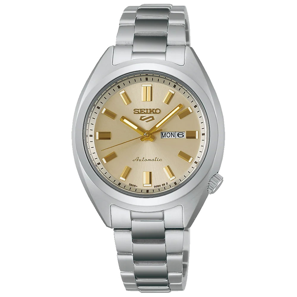 The dial is finished in a rich cream, doubled by the cream-toned lumibrite indices, elevated by fine surface details that create depth and luxury. A newly designed bracelet with a smaller pitch ensures a comfortable fit while echoing the timeless character of the SNXS line.