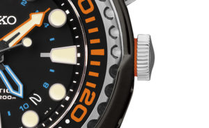 The movement is Seiko’s unique Kinetic technology. Ever since 1992 when Seiko made its first Kinetic diver’s watch, this high-precision technology has delivered to divers a combination of timing accuracy and security that no other watch can offer.
